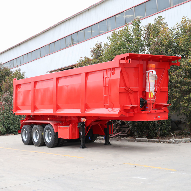 Dump Trailer is one of heavy duty trailer. Also known as dumper or engineering vehicle, a dump trailer is equipped with an automatic dumping device. It is composed of automobile chassis, hydraulic lifting mechanism, power take-off device, and cargo compartment. In civil engineering, it often operates along with excavators, loaders, and belt conveyors to form production lines for loading, unloading and transporting earthwork, gravel, and loose materials.