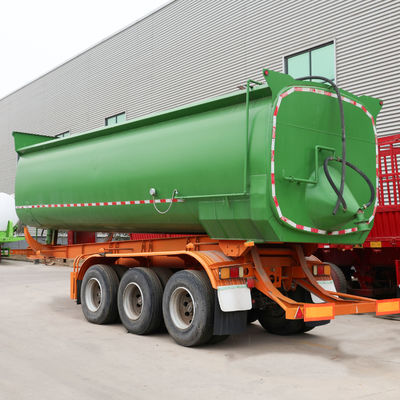 Dump Trailer is one of heavy duty trailer. Also known as dumper or engineering vehicle, a dump trailer is equipped with an automatic dumping device. It is composed of automobile chassis, hydraulic lifting mechanism, power take-off device, and cargo compartment. In civil engineering, it often operates along with excavators, loaders, and belt conveyors to form production lines for loading, unloading and transporting earthwork, gravel, and loose materials.
