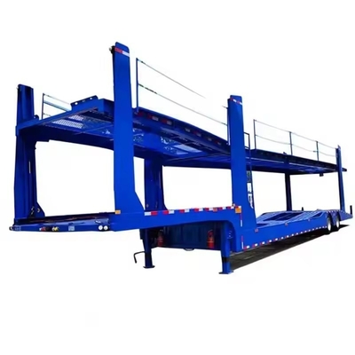Car carrier trailer is also named car transport semi trailer, refers to a vehicle used to transport cars,which can be customized in length according to customer demands, with the frame being welded I-beam.The upper chassis can be divided into two or three parts and adjustable in height using a hoist and hydraulic cylinder. The front panel of the enclosed type is covered with stamped small corrugated plates, while the sides are covered with either small corrugated plates or stamped corrugated plates. The top is equipped with poles and a cover. The vehicle is equipped with a toolbox, a spare tire rack, and a drip brake system to enhance the safety of vehicle transportation.
